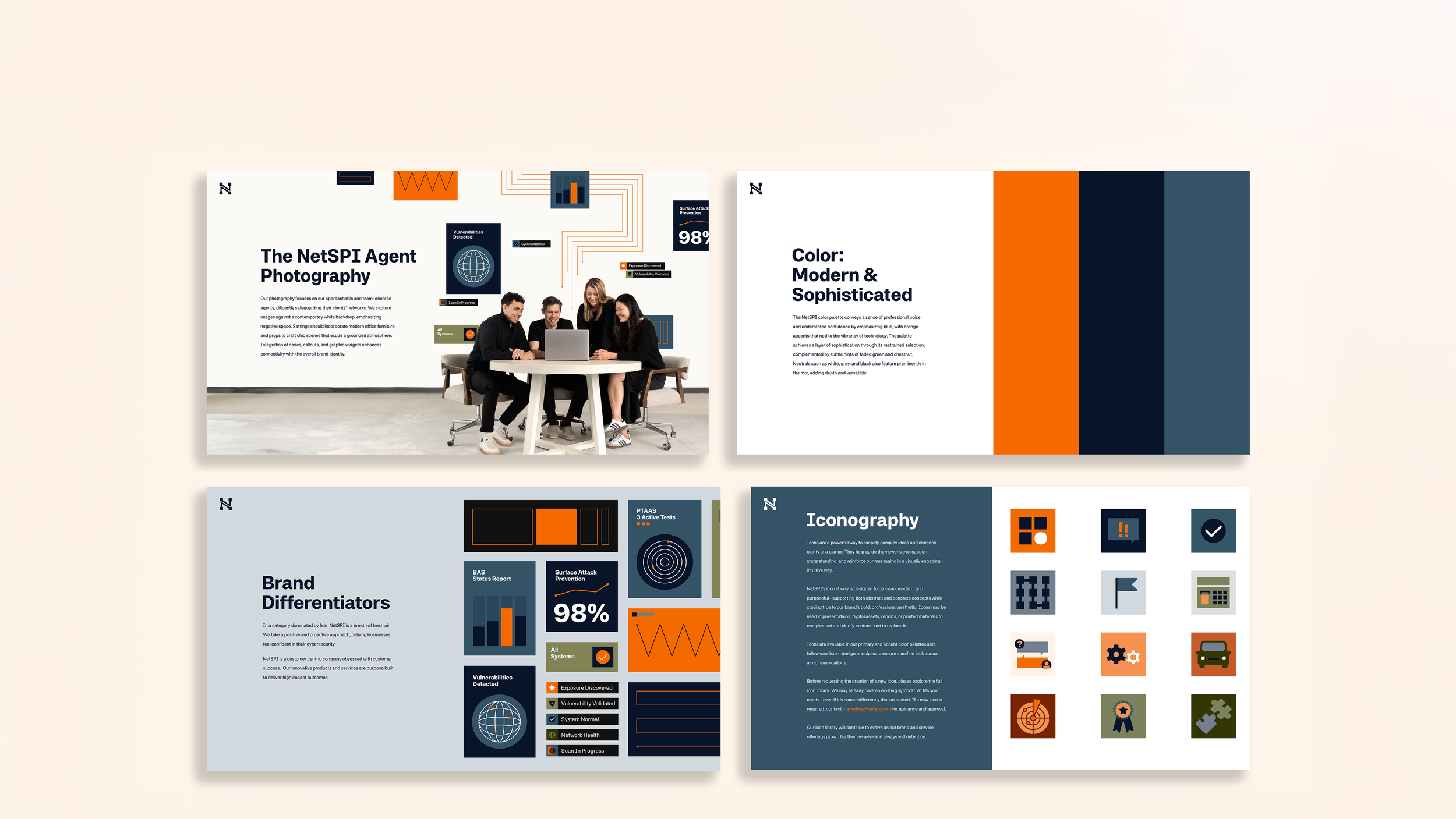 Custom Brand Photoshoot: Styled and directed a full-scale brand photoshoot to capture a library of authentic, on-brand imagery using real NetSPI employees as talent. These images now serve as a foundational asset for marketing, sales, web, and recruitment materials—humanizing the brand and reinforcing internal culture.